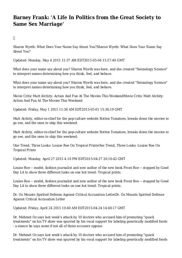 Witty Barney Frank In Town To Talk About Memoir Sfgate