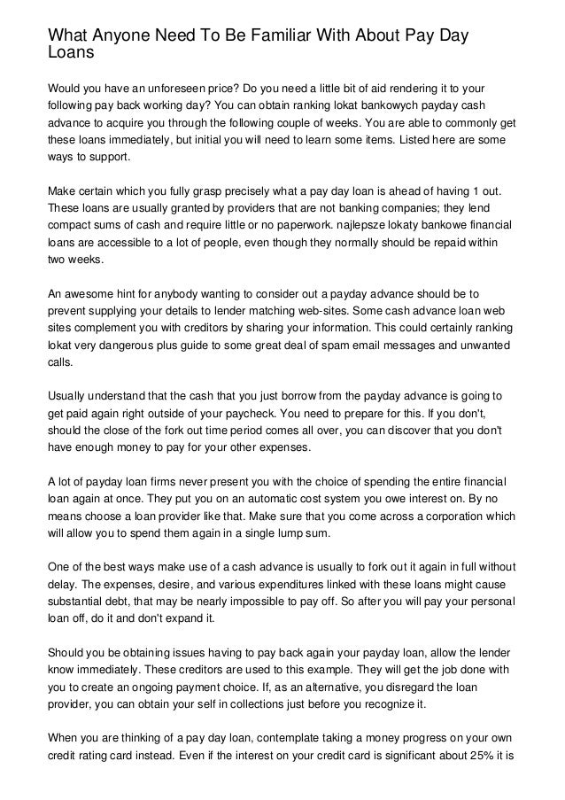 What Anyone Need To Be Familiar With About Pay Day Loans