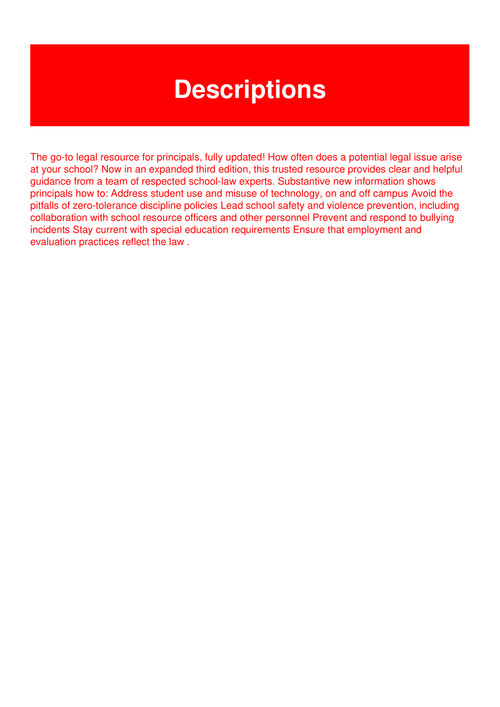 Sell principals quick reference guide to school law. What every education leader should know about legal actions 2005. With 35 years of successful turnaround leadership author lillie jessie provides a goldmine of life changing tips that impact teachers students and parents. The principals quick reference guide to school law.