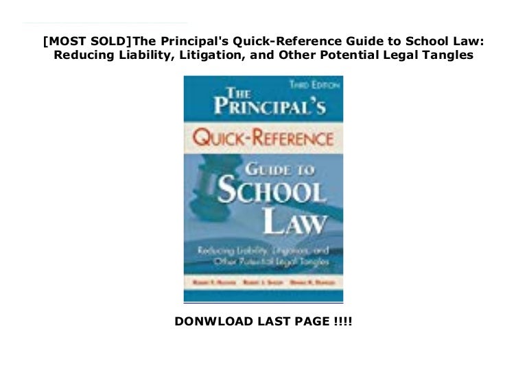 Principals quick reference guide school law. Even if the students never become an administrator it is most important that all educators have a good understanding of the laws that can affect their profession. For those who intend to one day become a school administrator the principals quick reference guide to school law is a must have for their professional library. Reducing liability litigation and other potential legal tangles. And anatomy of a lawsuit.