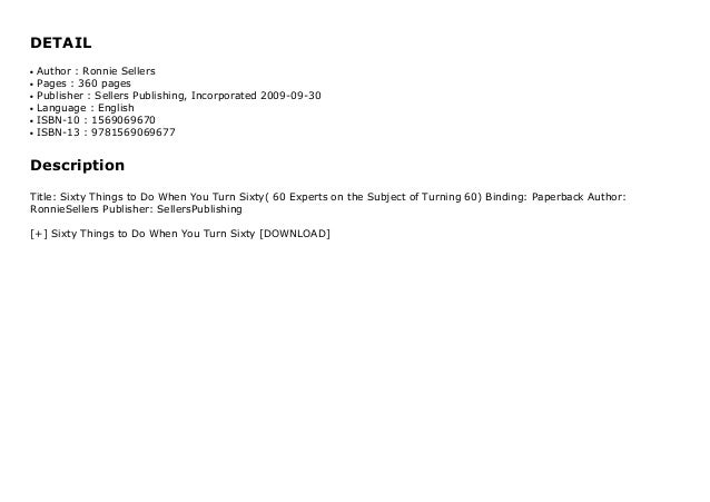 Sixty Things To Do When You Turn Sixty 60 Experts On The Subject Of Turning 60 Various Ronnie Sellers 8601200626407 Amazon Com Books